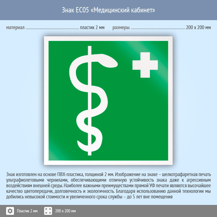 Знак EC05 «Медицинский кабинет» (пластик, 200х200 мм) в Пензе купить