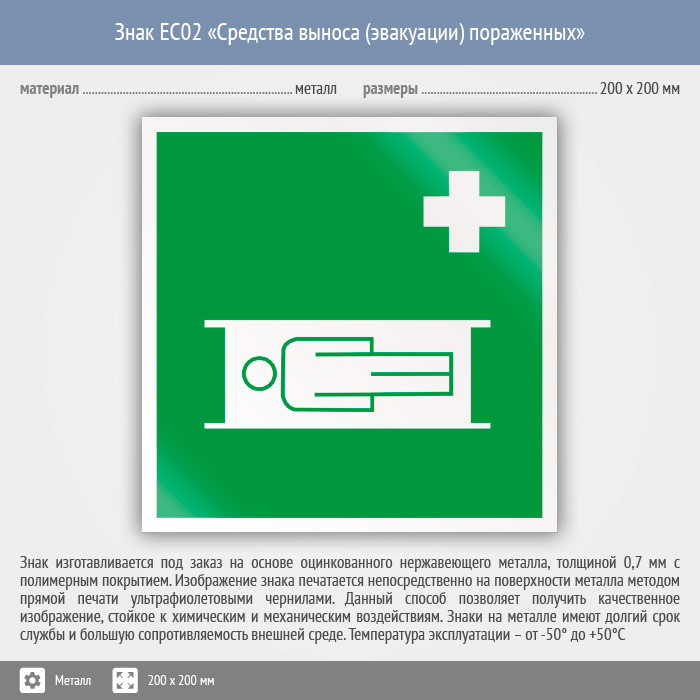 Знак EC02 «Средства выноса (эвакуации) пораженных» (металл, 200х200 мм) в Пензе купить