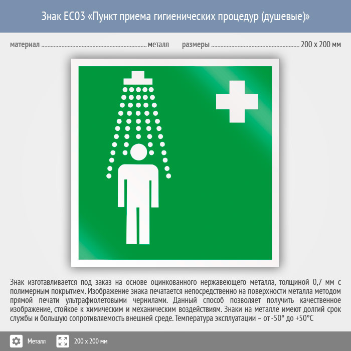 Знак EC03 «Пункт приема гигиенических процедур (душевые)» (металл, 200х200 мм) в Пензе купить