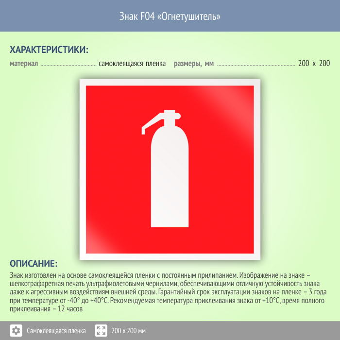 Знак F04 «Огнетушитель» (пленка, 150х150 мм) в Пензе купить