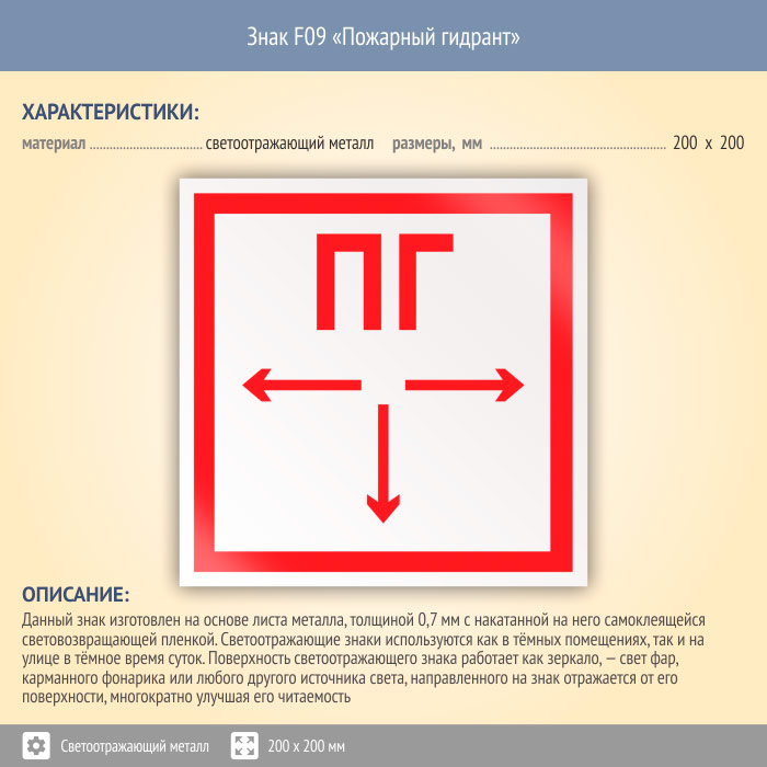 Знак F09 «Пожарный гидрант» (светоотражающий металл, 200х200 мм) в Пензе купить
