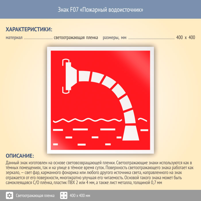Знак F07 «Пожарный водоисточник» (светоотражающая пленка, 400х400 мм) в Пензе купить
