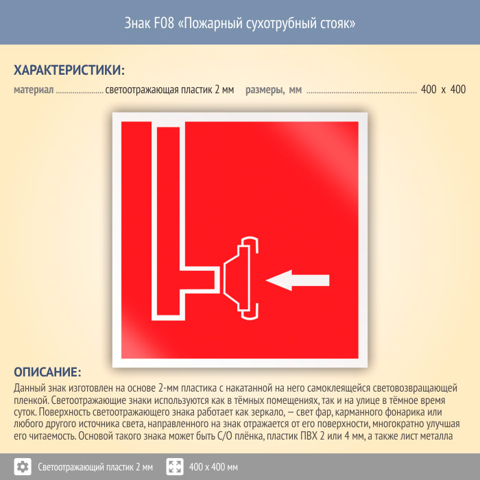 Знак F08 «Пожарный сухотрубный стояк» (светоотражающий пластик, 400х400 мм) в Пензе купить