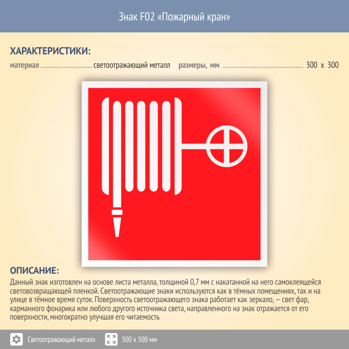 Знак F02 «Пожарный кран» (светоотражающий металл, 300х300 мм) в Пензе купить