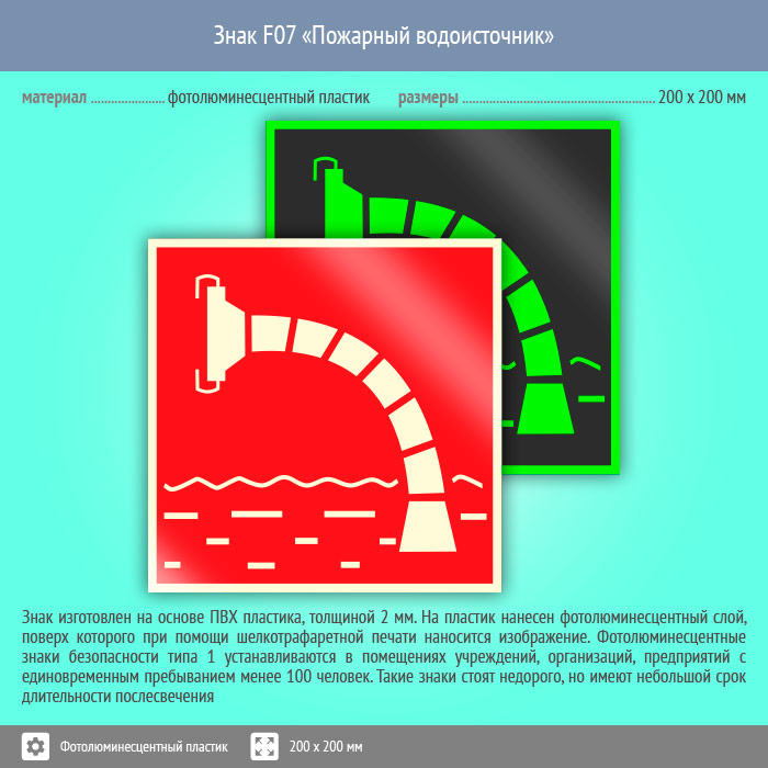 Знак F07 «Пожарный водоисточник» (фотолюминесцентный пластик, 200х200 мм) в Пензе купить