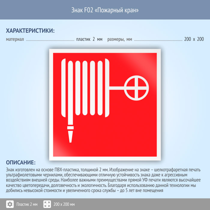 Знак F02 «Пожарный кран» (пластик, 200х200 мм) в Пензе купить