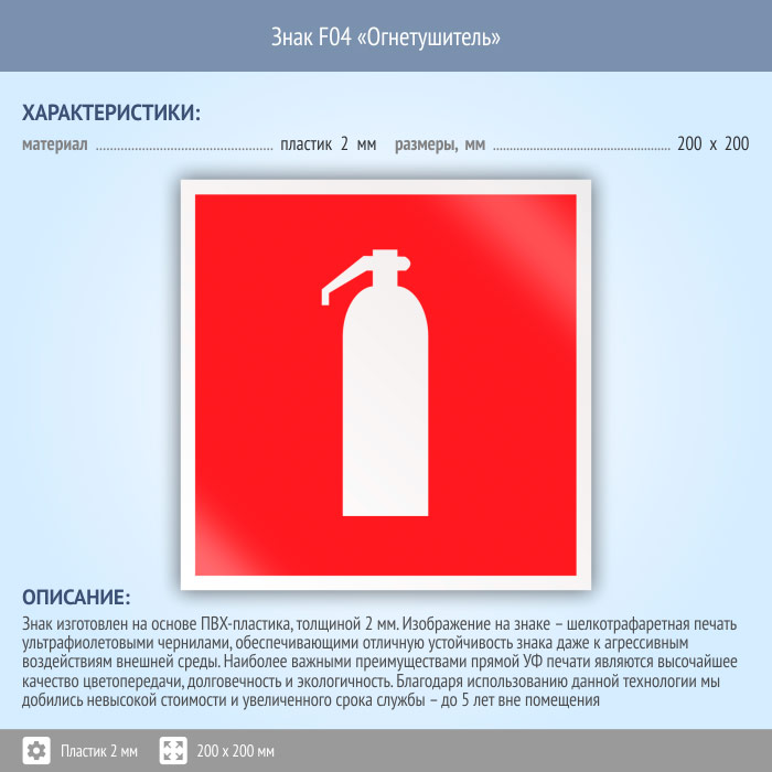 Знак F04 «Огнетушитель» (пластик, 200х200 мм) в Пензе купить