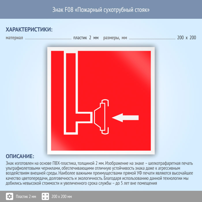 Знак F08 «Пожарный сухотрубный стояк» (пластик, 200х200 мм) в Пензе купить