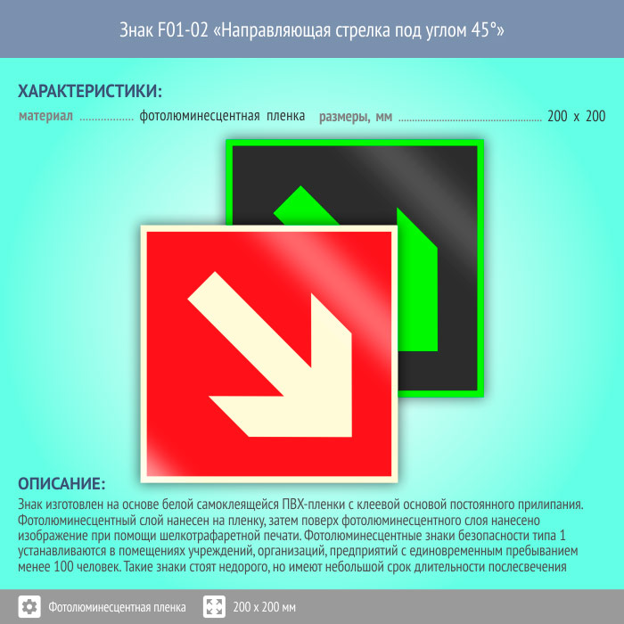 Знак F01-02 «Направляющая стрелка под углом 45°» (фотолюминесцентная пленка, 200х200 мм) в Пензе купить