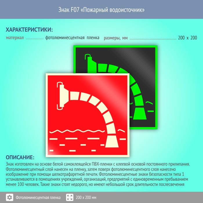 Знак F07 «Пожарный водоисточник» (фотолюминесцентная пленка, 200х200 мм) в Пензе купить