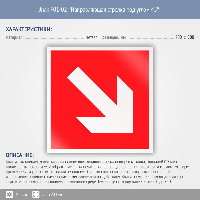 Знак F01-02 «Направляющая стрелка под углом 45°» (металл, 200х200 мм) в Пензе купить