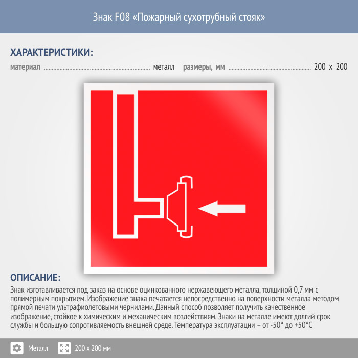 Знак F08 «Пожарный сухотрубный стояк» (металл, 200х200 мм) в Пензе купить